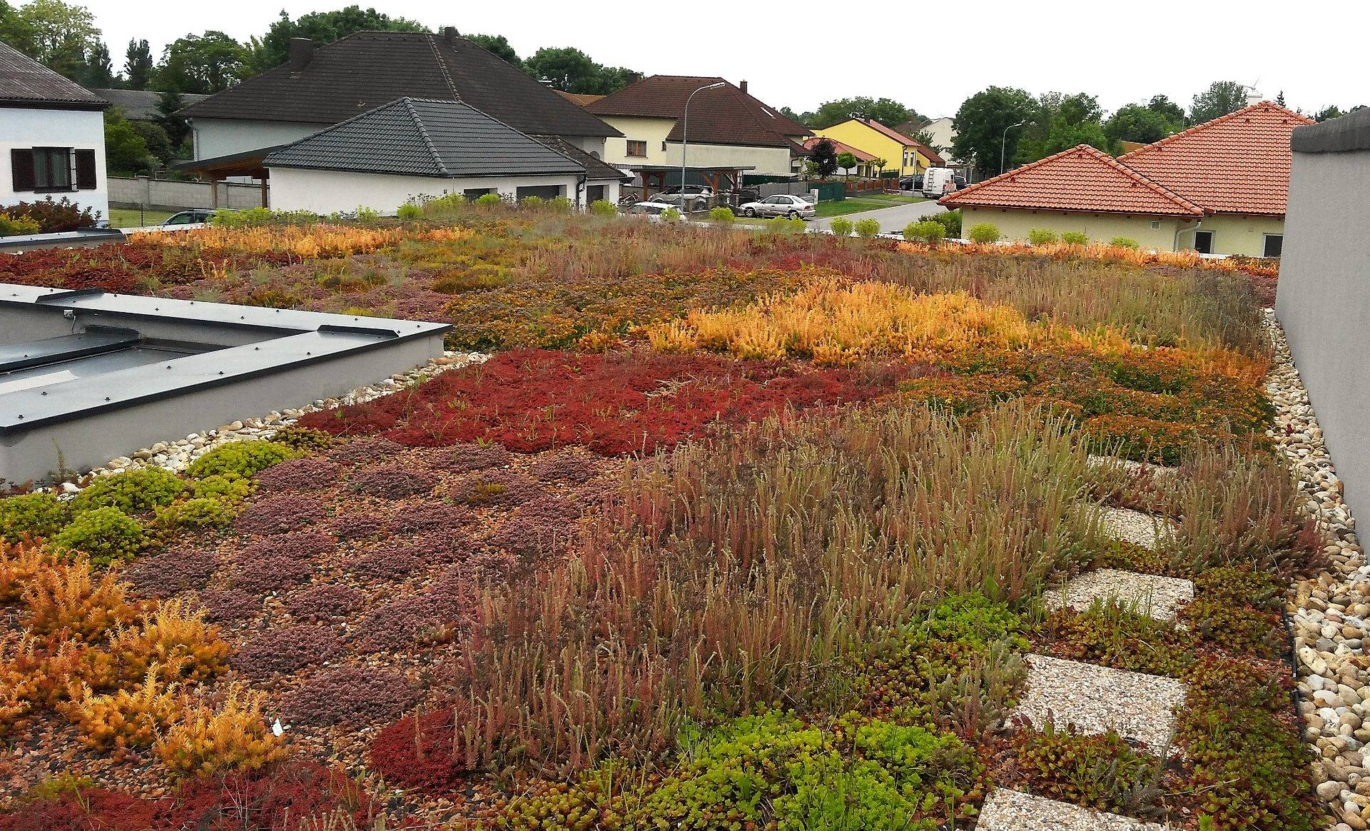 - Gründach mit Vegetation, begehbar über einen Zugang