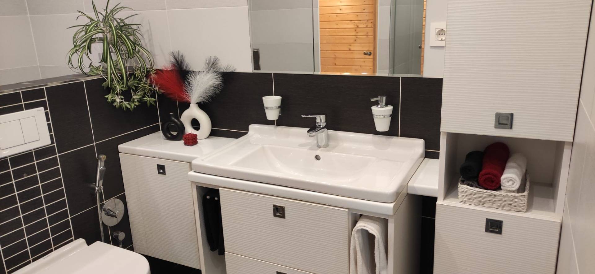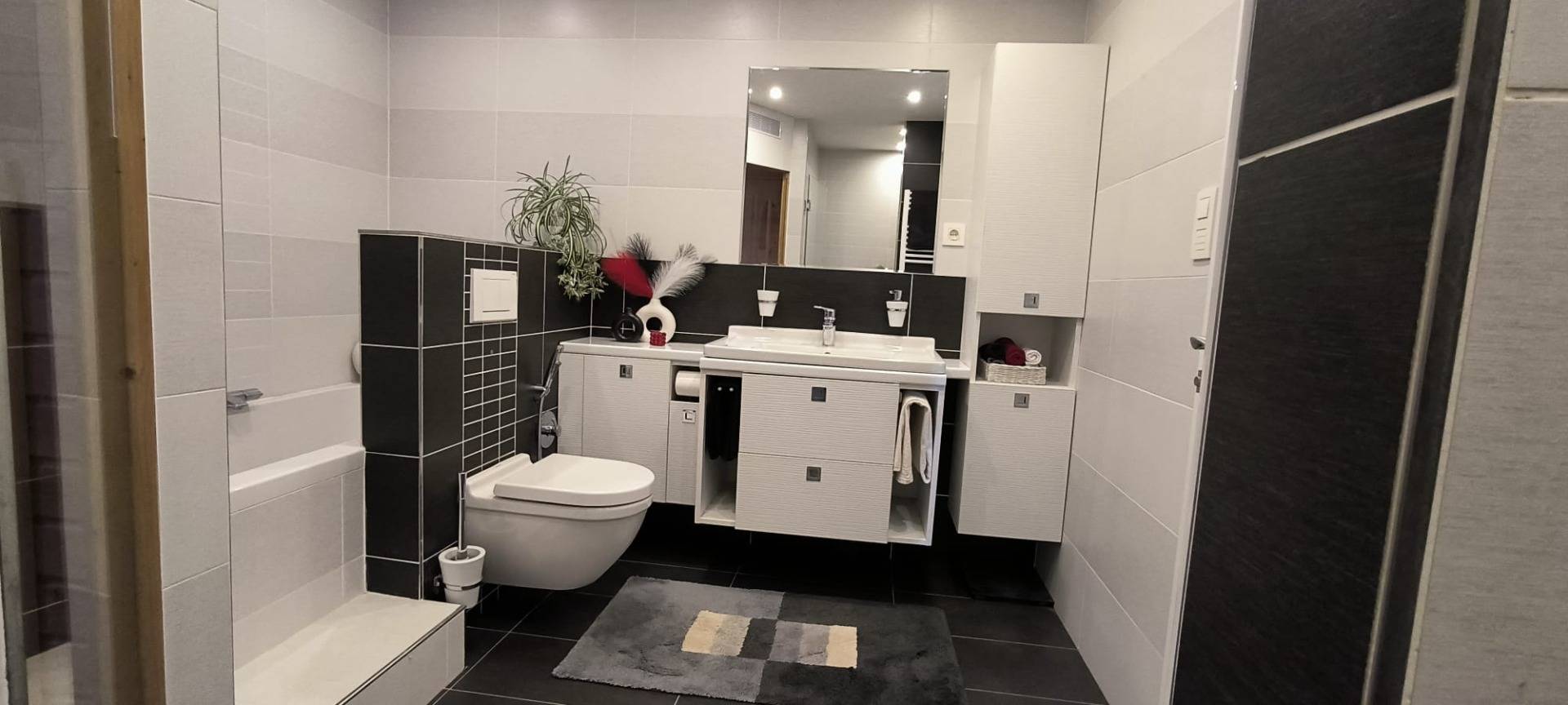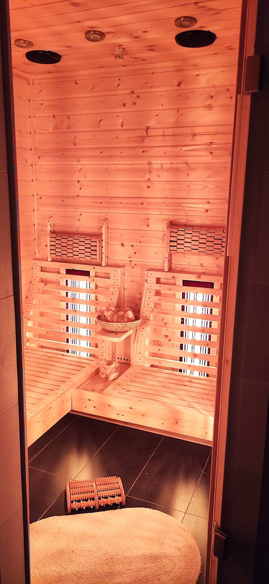 - Badezimmer mit Dusche, Badewanne, WC und Infrarotsauna