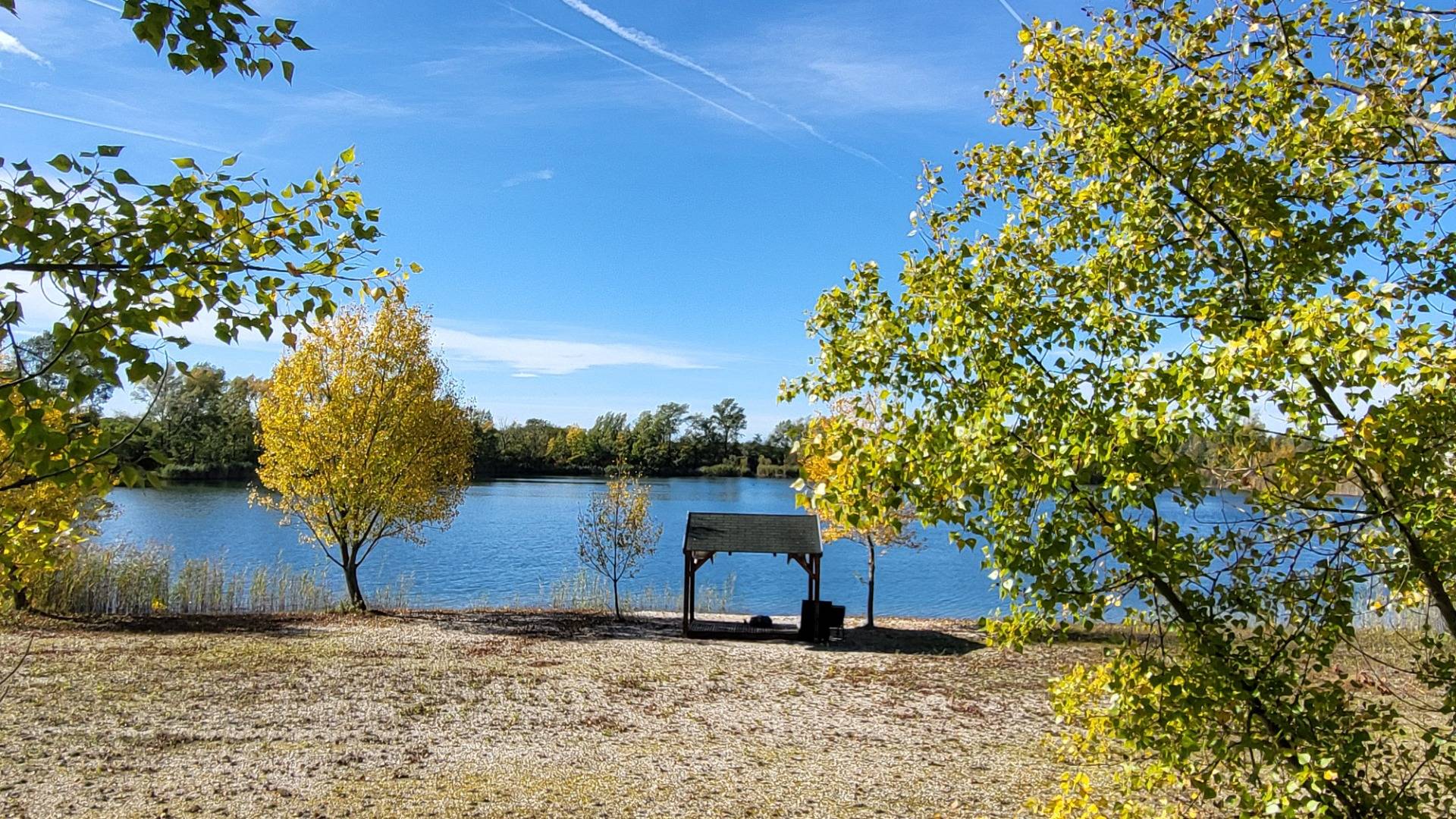 Der Teich hat eine Tiefe von 4 bis 6 m, was klares Wasser und eine vielseitige Nutzung zur Freizeitgestaltung gewährleistet: Schwimmen, Bootfahren oder Angeln. Mehrere Bäume trennen den Teich von der Straße ab.