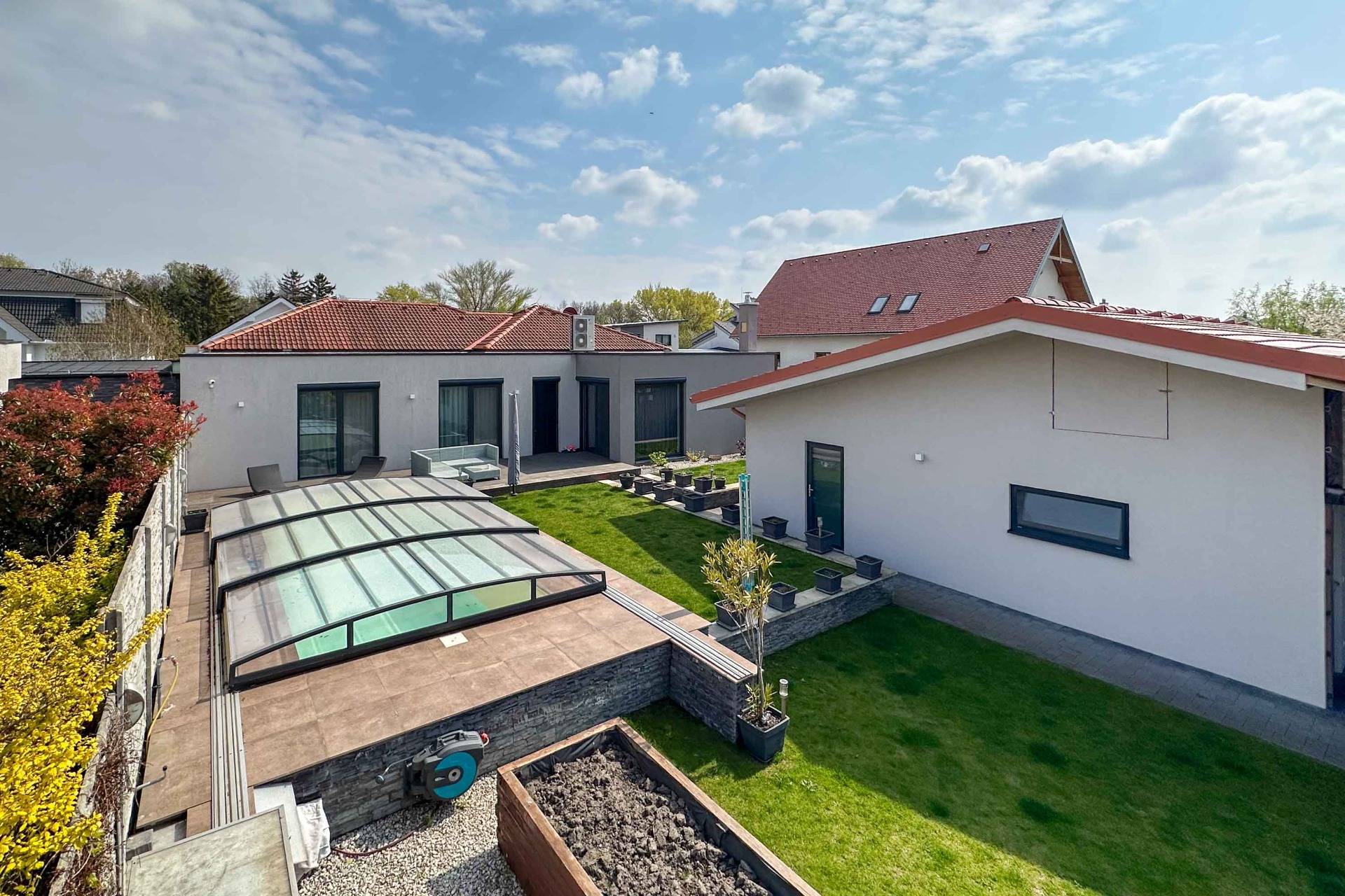 Die aufwendig gestaltete Außenanlage bietet ein Höchstmaß an Privatsphäre und Lebensqualität:
