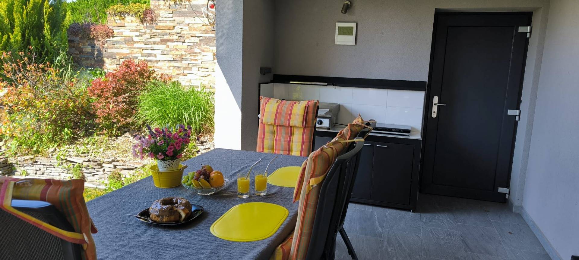- Westterrasse mit zwei Sonnenrollos zur Beschattung