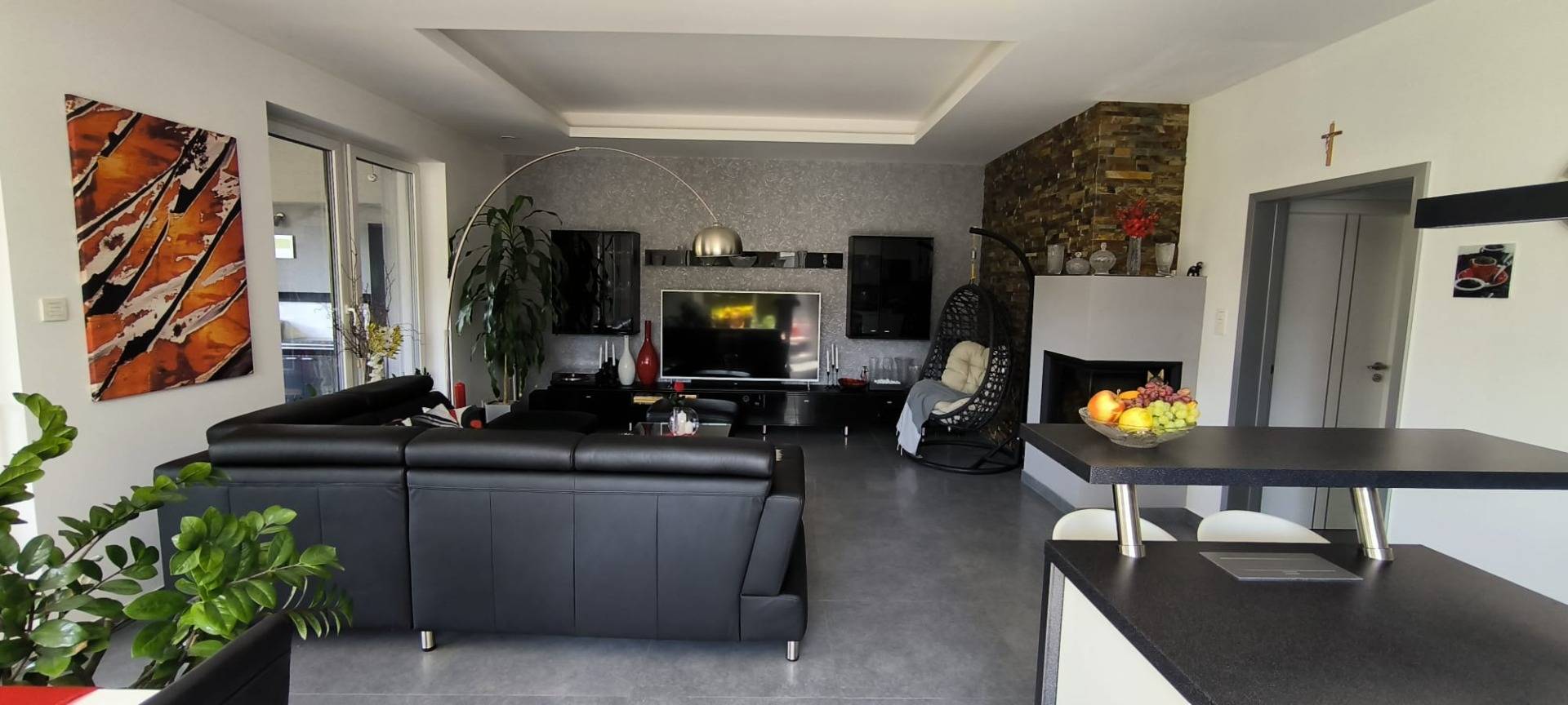 - Kamin im Wohnzimmer