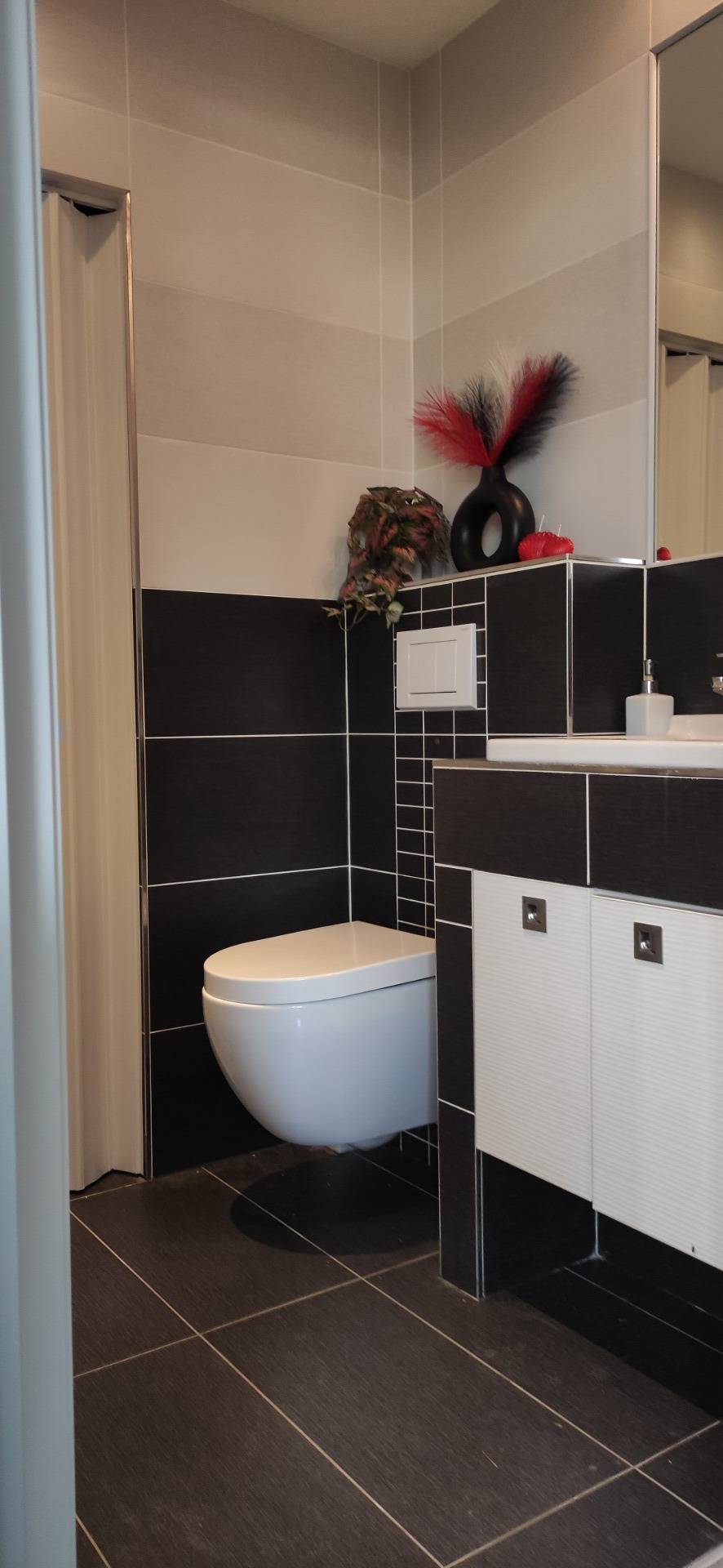 - Badezimmer mit Dusche, Badewanne, WC und Infrarotsauna